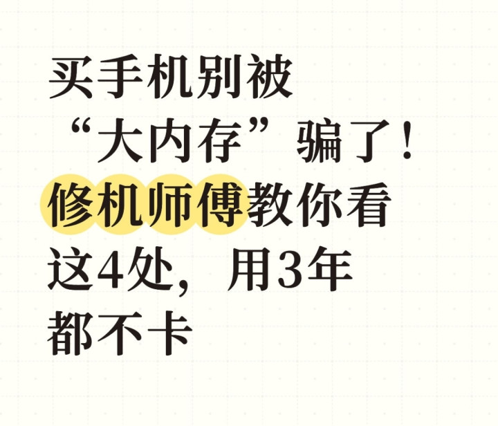 不少人买手机第一件事就是问“内存多大”,觉得16+512G的组合就能用好几年。但我家楼下修手机的王师傅跟我说,他店里一半的卡顿手机,内存其实都没装满——真正让手机用一年就卡的,是大家忽略的4个核心地方。今天就把这些内行门道扒清楚,下次选手机照着看,再也别被“大内存”的噱头忽悠了。